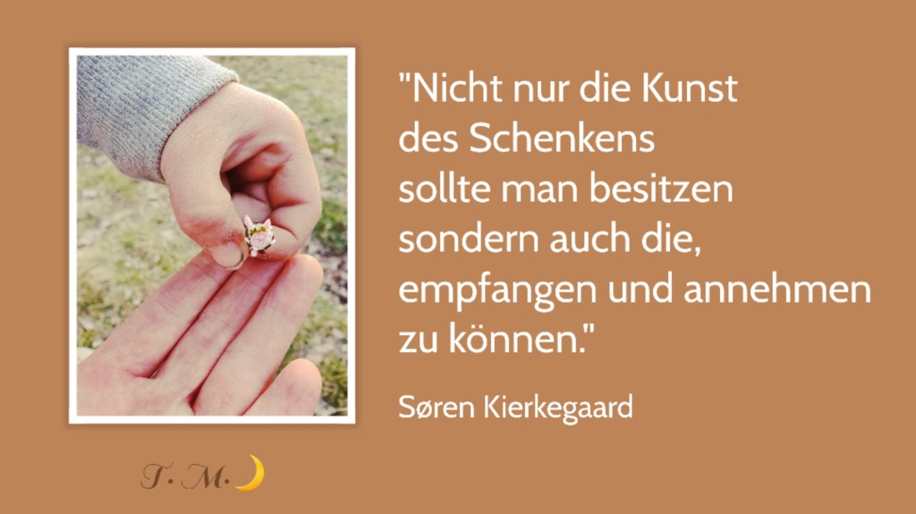 Wir müssen schwierige Situationen nicht allein meistern. Wir dürfen Hilfe annehmen. Und genau das fällt uns manchmal so schwer. Das Ego stirbt einen kleinen Tod, wenn wir etwas nicht aus eigener Kraft schaffen. Aber vielmehr leidet die Lebensqualität wenn wir uns nicht im rechten Moment unterstützen lassen.